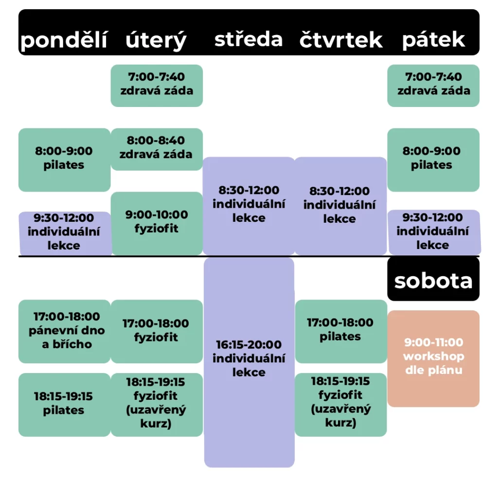 Zaměřujeme se na pilates a post-rehabilitační péči, učíme vás, jak správně zacházet se svým tělem a vnímat ho do hloubky.