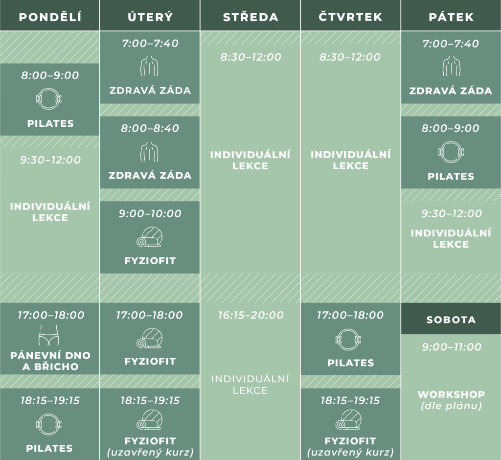 Zaměřujeme se na pilates a post-rehabilitační péči, učíme vás, jak správně zacházet se svým tělem a vnímat ho do hloubky.